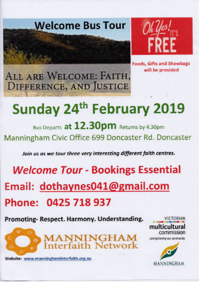 Please join us in the Tour to Places of Worship as we are visiting three very interesting different faith centres. All are welcome.